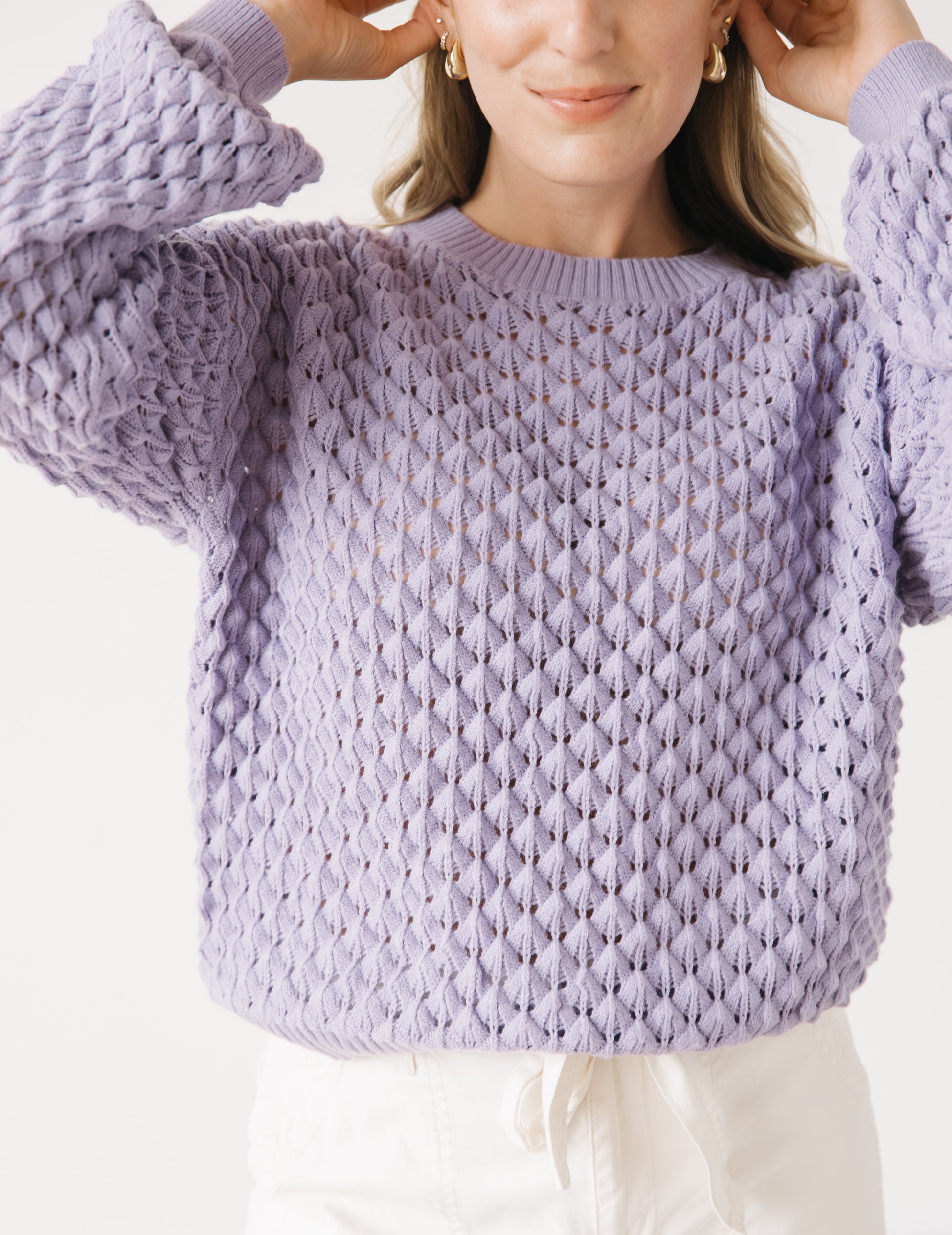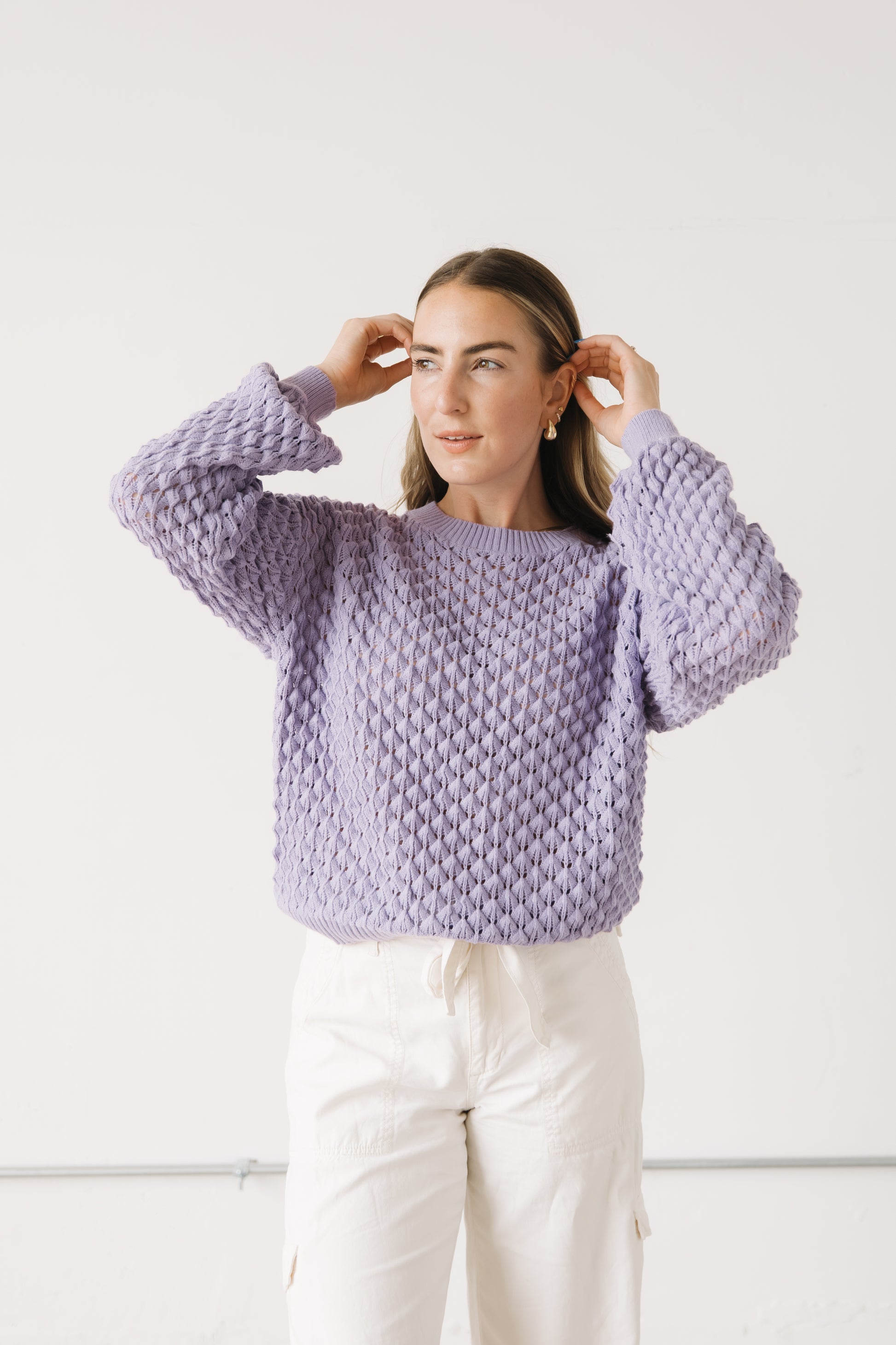 Get ready to bloom with the Alice Sweater! This playful bubble top features a fresh winter style in a lightweight, lovely lavender color. Don't miss out on this colorful addition to your wardrobe!