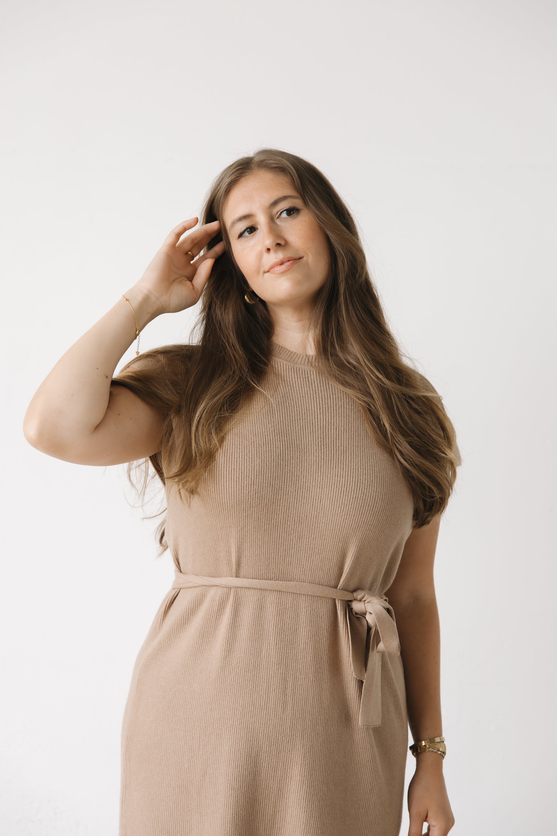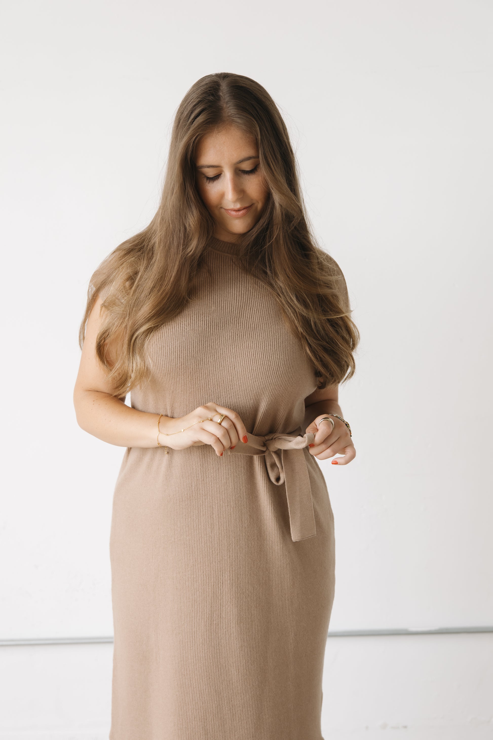 Stay chic and cozy in the Arnold Dress. This camel sweater dress is the perfect fall transitional piece, perfect for both the office and everyday wear. The midi length adds a classic touch, while the removable belt allows for versatility in styling. Get ready to turn heads in this office approved dress!
