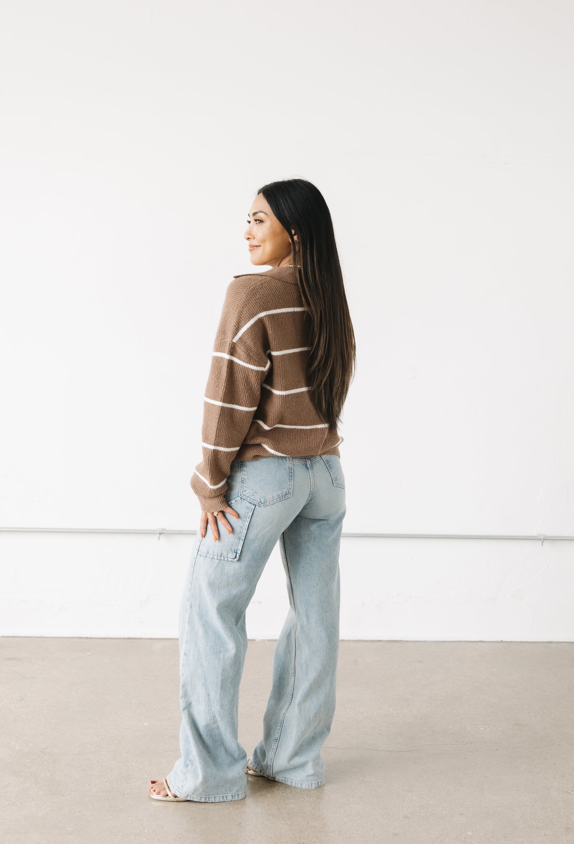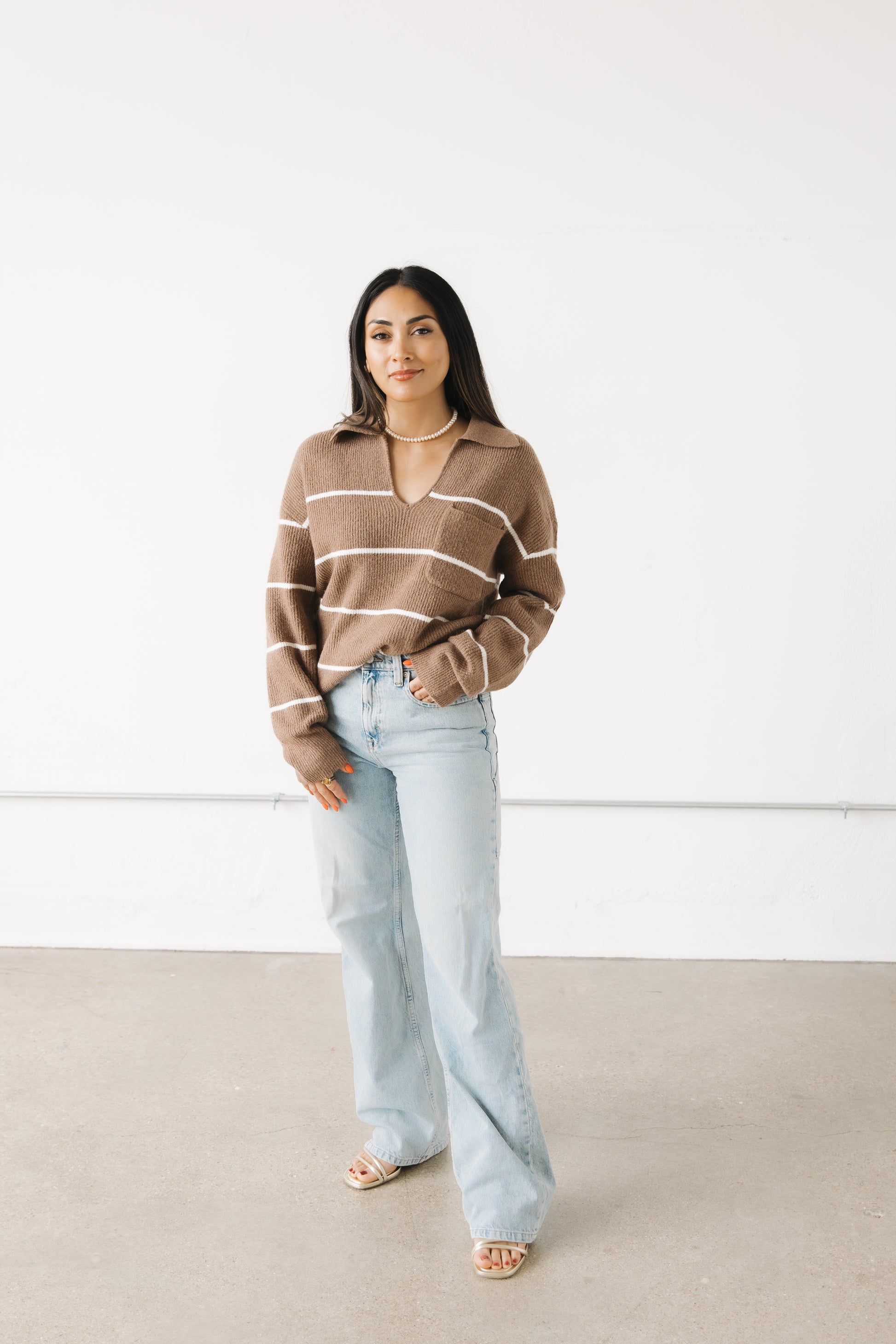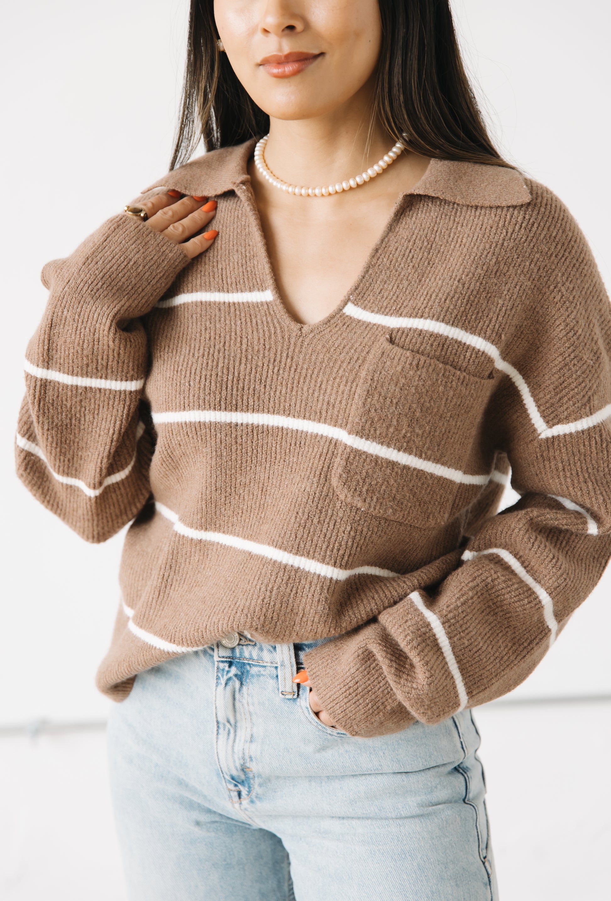 Spice up your winter wardrobe with our Elsa Sweater! This knit cinnamon brown sweater features cream colored stripes for a cozy but stylish look. Stay warm and on-trend this season in this playful and quirky addition to your closet. (Sweater weather never looked so good!)