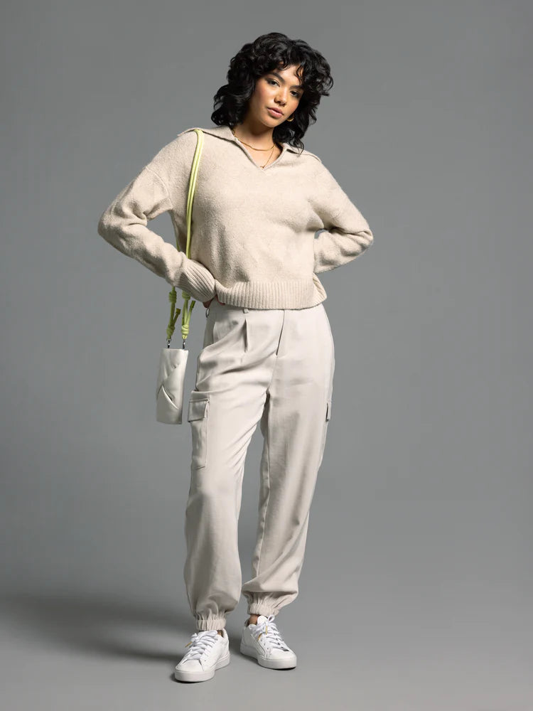 Get ready for fall with the Prudence Sweater! This classic beige sweater is the perfect addition to any wardrobe. Stay cozy and stylish in the cooler months with this must-have piece.